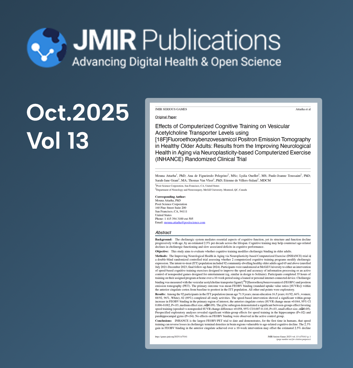 The INHANCE brain imaging study was conducted by researchers at McGill University in Canada and funded by the National Institutes of Health. The study showed—for the first time in humans—that the brain’s chemical system can be strengthened by a specific form of online brain training, effectively reducing age-related cognitive decline by about a decade. The specific chemical the researchers tracked was acetylcholine.